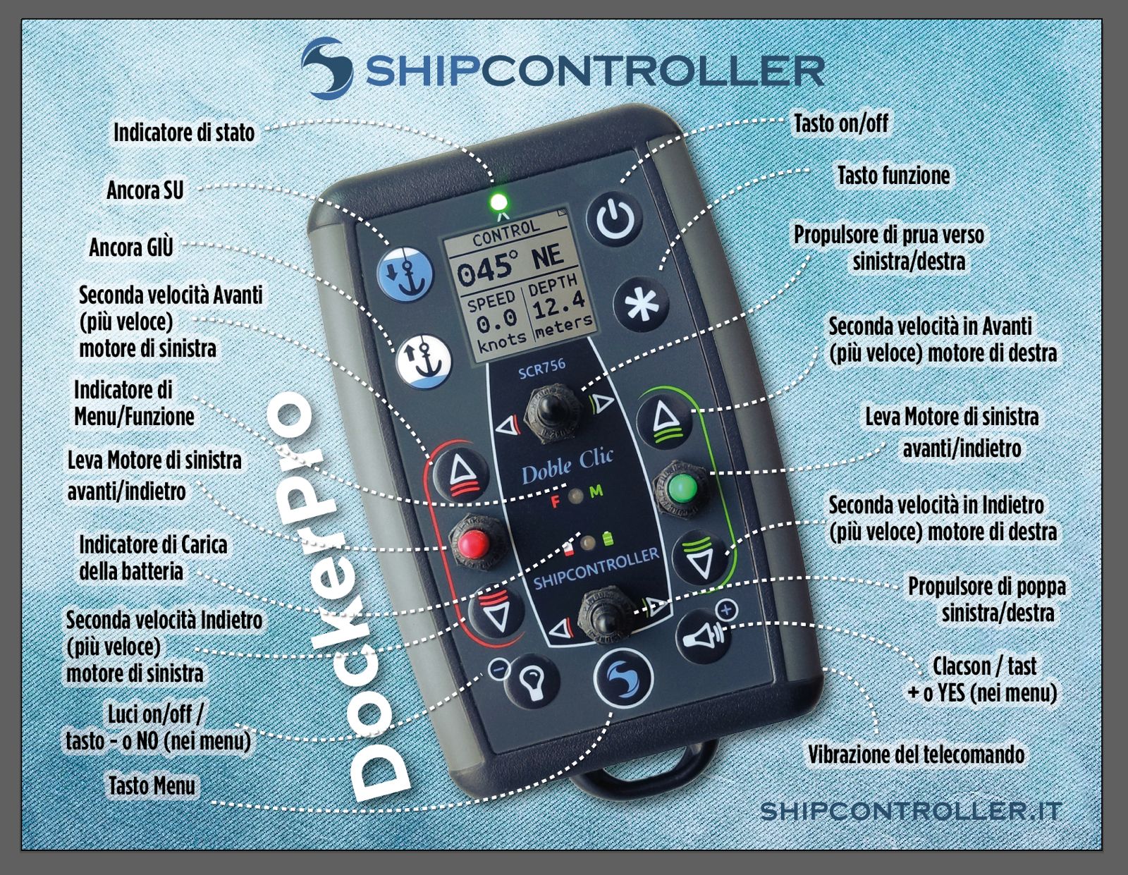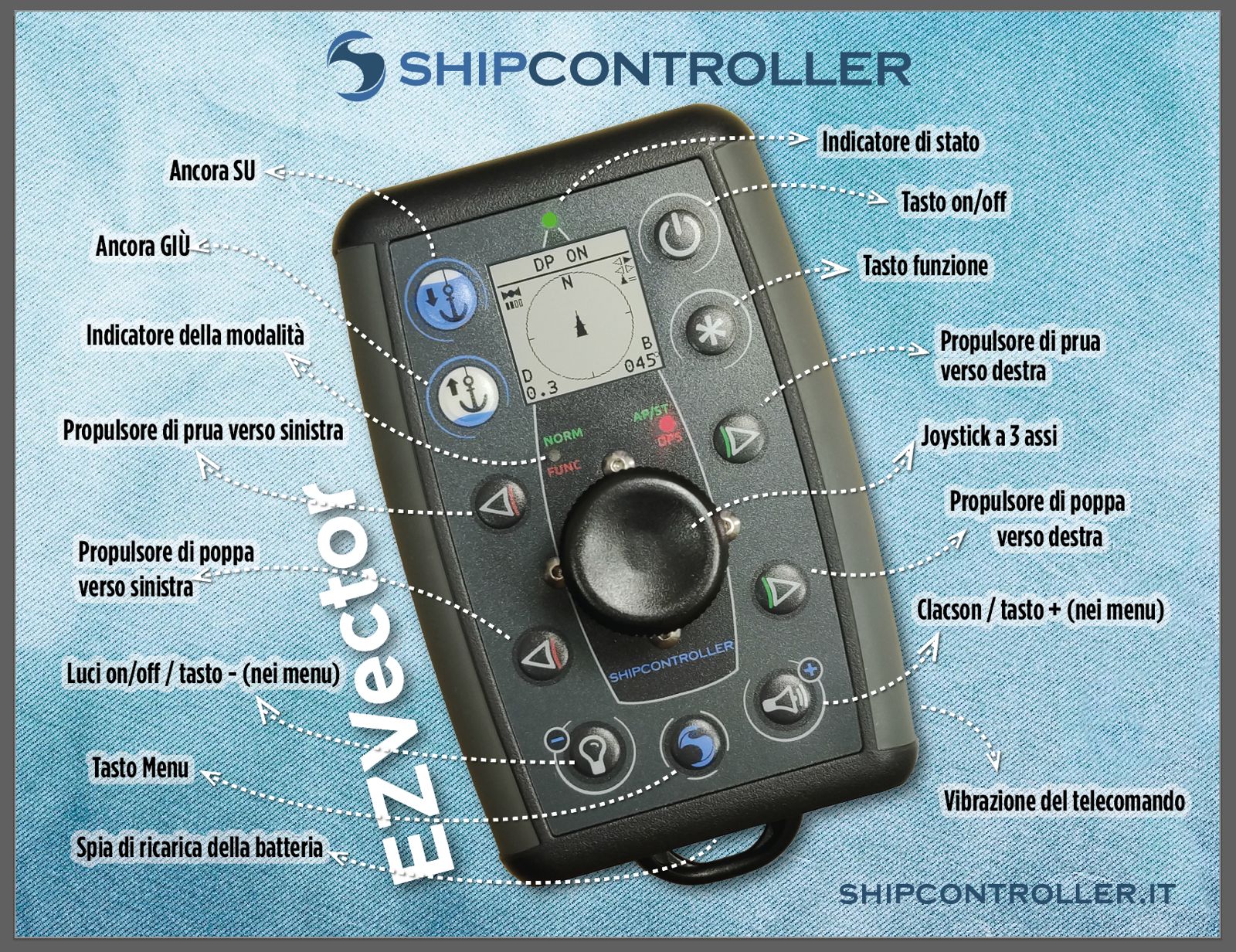I telecomandi Shipcontroller più avanzati sono dotati di un display grafico ibrido tecnologico con bassissimo consumo energetico e alta frequenza di aggiornamento. Le sue caratteristiche consentono visualizzazione delle informazioni senza fastidiosi problemi, estendendo la durata della batteria.